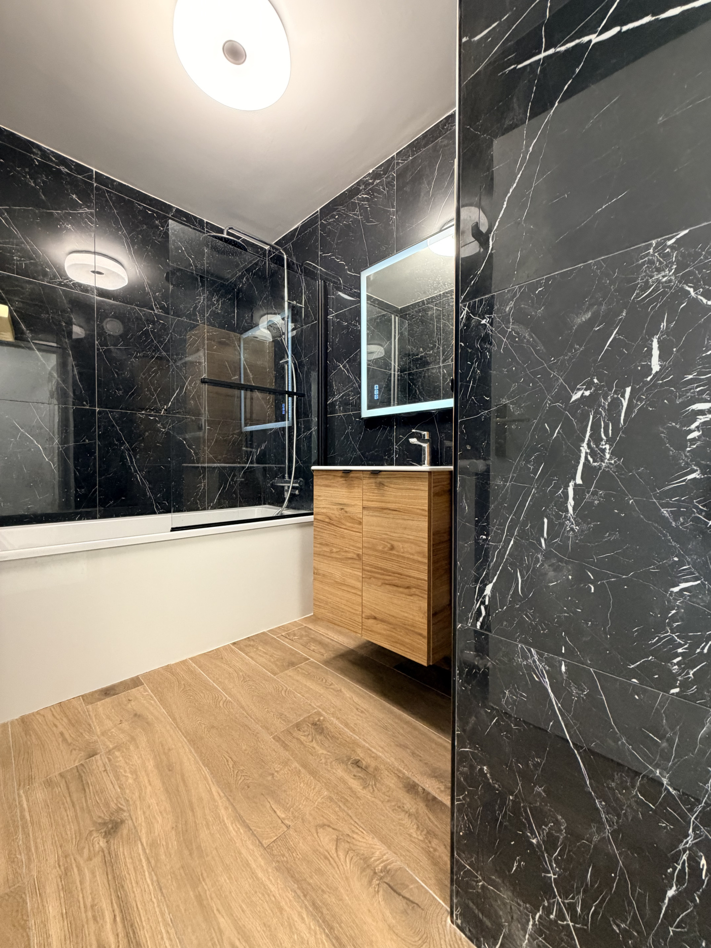 L'appartement comprend une buanderie pratique, un dressing, deux chambres spacieuses, un séjour lumineux et une cuisine équipée et aménagée avec goût. Vous serez séduit par son carrelage effet marbre moderne et les meubles au choix mis à votre disposition.