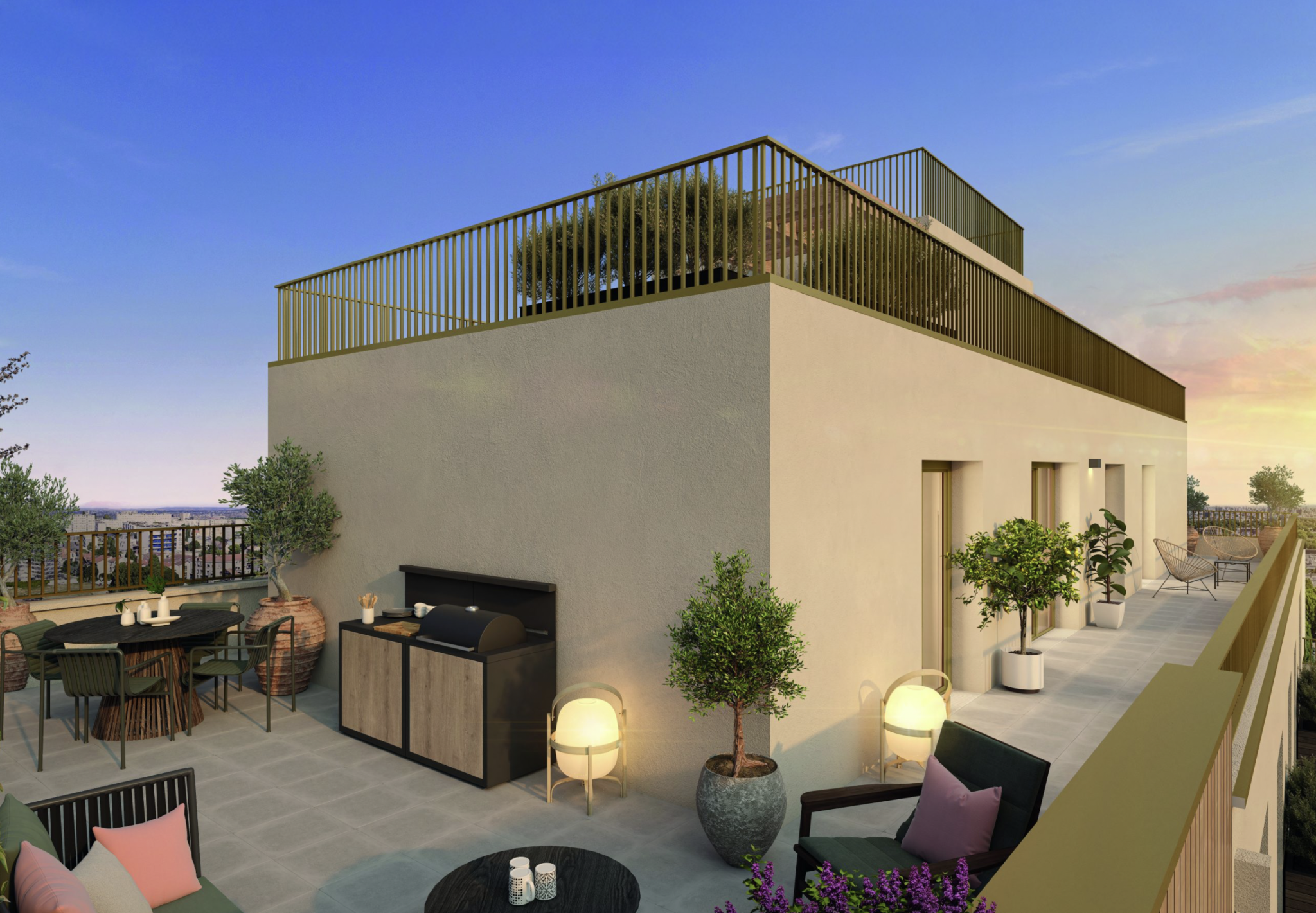 Espaces extérieurs (balcons, terrasses ou jardins selon les logements)